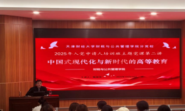 为认真学习贯彻习近平新时代中国特色社会主义思想,深入学习领会党的二十大和二十届二中、三中全会精神,引导入党申请人深刻把握中国式现代化的时代内涵与高等教育的使命担当,财税与公共管理学院分党校于2025年10月10日开展2025年度入党申请人培训班主题党课第二讲。本次党课由财税与公共管理学院党委书记陈旭东教授主讲。