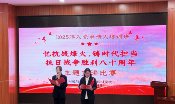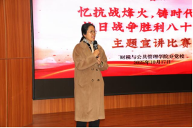 为深入贯彻习近平新时代中国特色社会主义思想,深刻学习领会党的二十大及二十届四中全会精神,纪念中国人民抗日战争暨世界反法西斯战争胜利80周年,激励广大青年学子弘扬爱国主义精神,传承红色基因,坚定理想信念,财税与公共管理学院分党校于10月24日在Z001教室成功举办了“忆抗战烽火,铸时代担当”主题宣讲比赛。