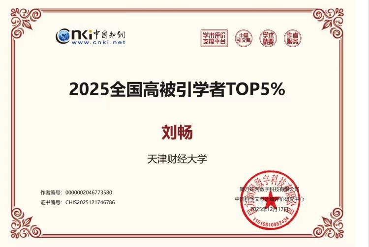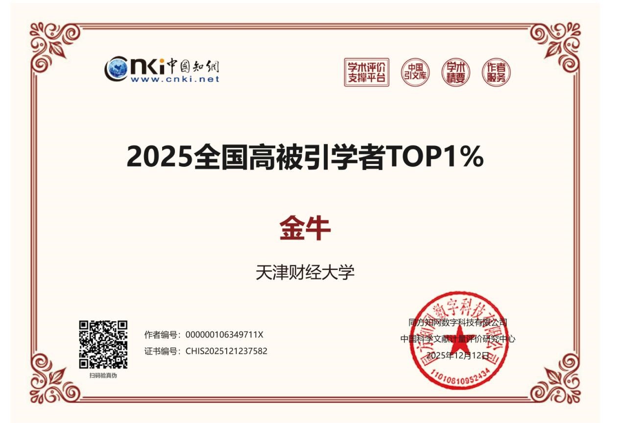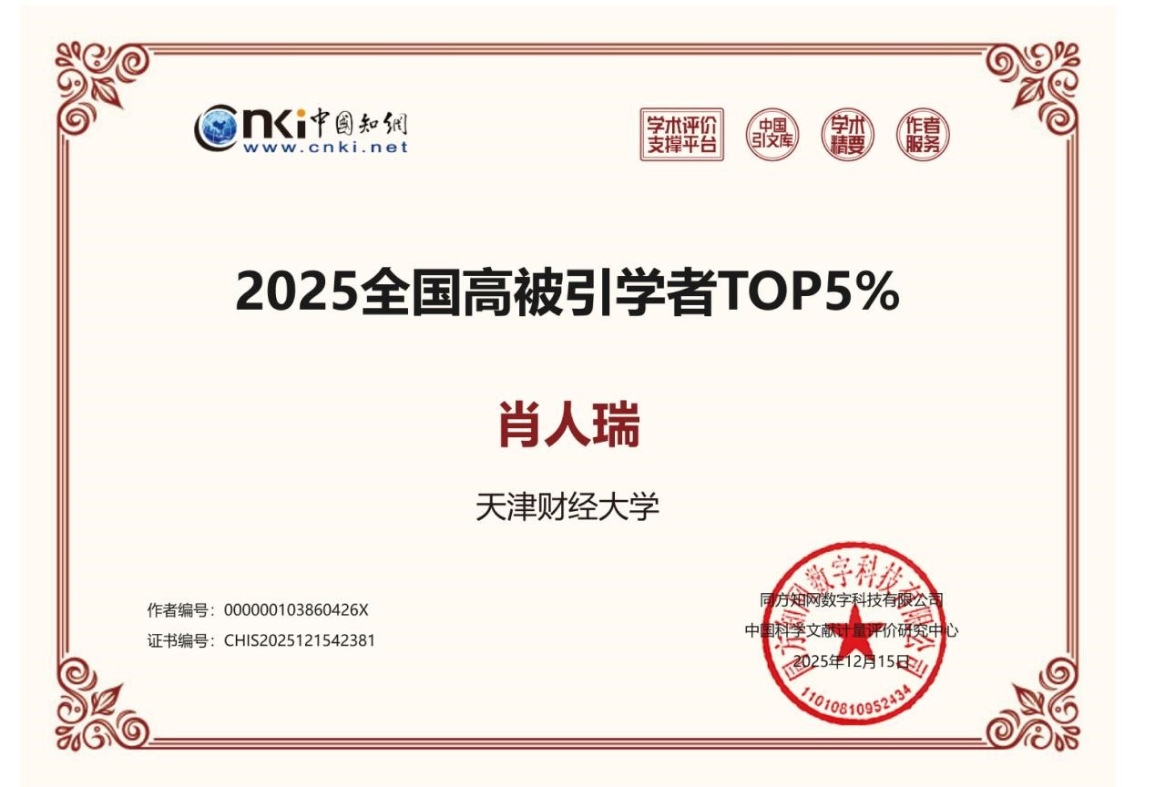 近日,我院多名青年教师孙正、金牛、唐权、梅林、刘畅、肖人瑞、秦文晋分别获得中国知网2025全国高被引学者Top1%和Top5%。“2025全国高被引学者”遴选遵循“聚焦高影响力成果”及“贡献度量化”的总体原则,统计2015-2024年中国知网收录的期刊论文、会议论文,且论文引证标准化指数(简称PCSI)高于1.65。