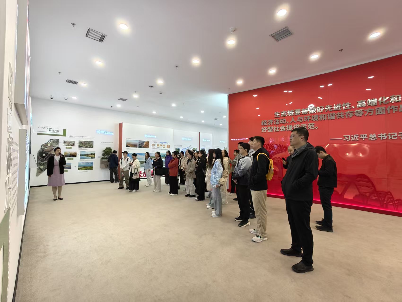 在生态城规划展览馆,师生们沿着“规划-建设-运营-生活”的主线,系统了解了生态城的“三和”(人与人和谐共存、人与经济活动和谐共存、人与环境和谐共存)与“三能”(能实行、能复制、能推广)核心发展理念。