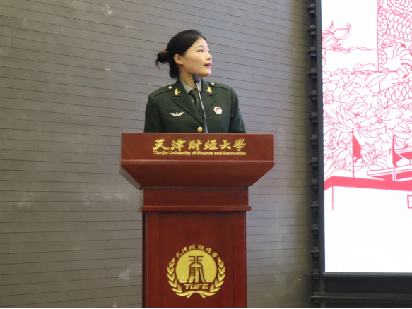 随后,特邀学校武装部退伍大学生胡瑞同学为在场同学开展征兵政策专题分享。她结合自身服役经历,从政策细则、实际优势、流程条件三个维度展开讲解:不仅系统解读了最新征兵政策要点,更重点分析了退伍军人在学业延续与就业发展上的独特优势,还清晰梳理了从网上报名到体检政审的全流程节点,并明确了体检的核心条件与注意事项。